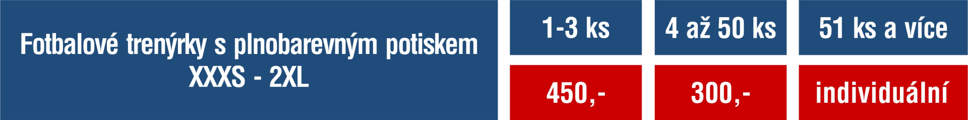Trenýrky pro fotbal navrhujeme a vyrábíme již od jednoho kusu. Grafické zpracování je zdarma a fotbalové trenýrky jsou vyrobeny i s tkaničkou. Fotbalové trenýrky vyrábíme ve velikostech XXXS až 2XL a v případě požadavku i větší velikostech. Fotbalové trenýrky vyrábíme plnobarevné a proto nerozlišujeme počet log ani barev. U fotbalových trenýrek při výrobě neůčtujeme přepisování čísel na nohavici. Pro samotnou realizaci fotbalových trenýrek nám stačí poslat logo klubu, náčrtek nebo obrázek a my vám připravíme grafický návrh.
